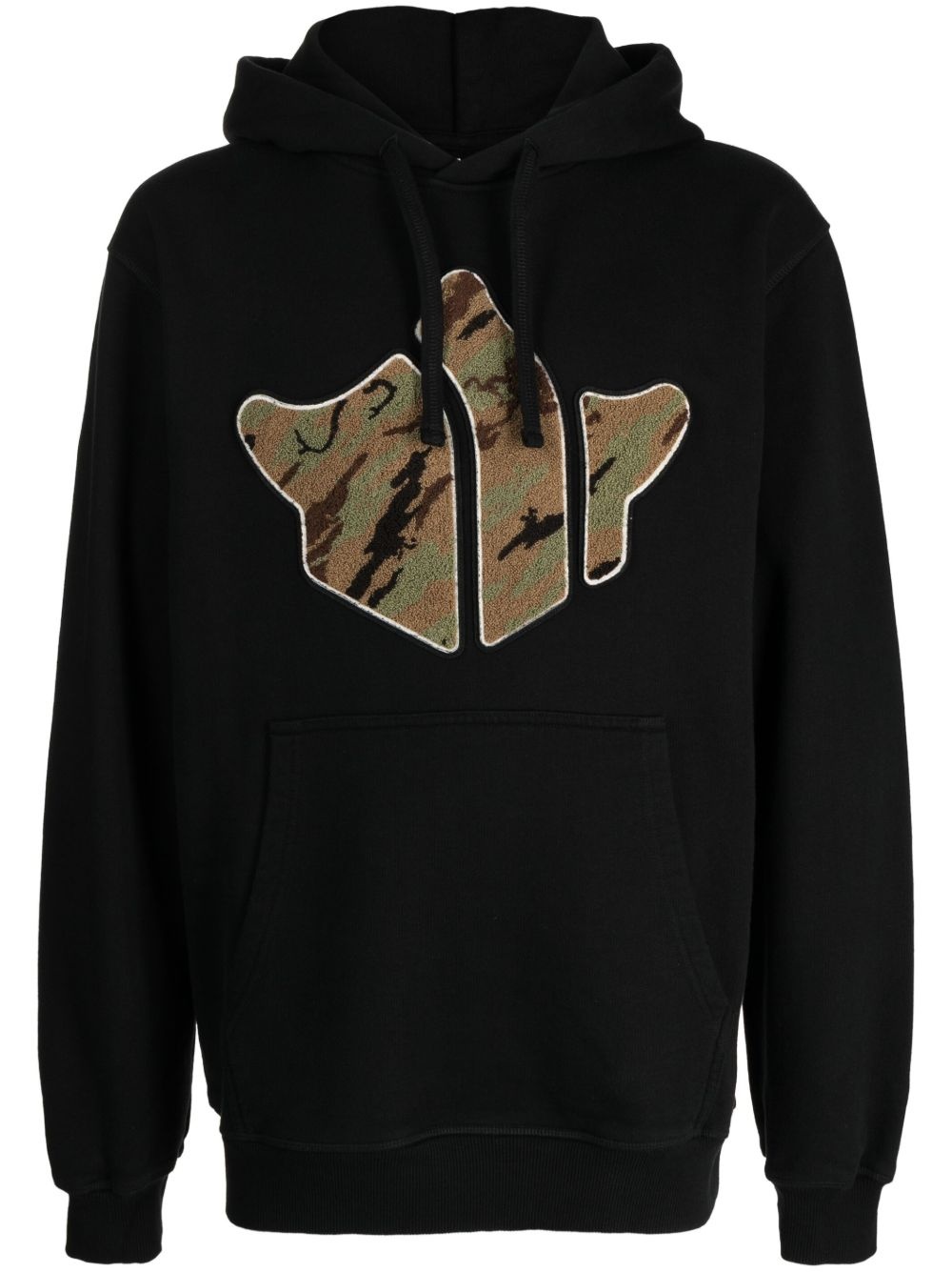 Maha Temple cotton hoodie Highlights - Black/multicolour - Organic cotton - Chenille logo patch to the front - Drawstring hood - Drop shoulder - Long sleeves - Ribbed cuffs and hem - Front pouch pocket - Straight hem Imported Composition Organic Cotton 100%