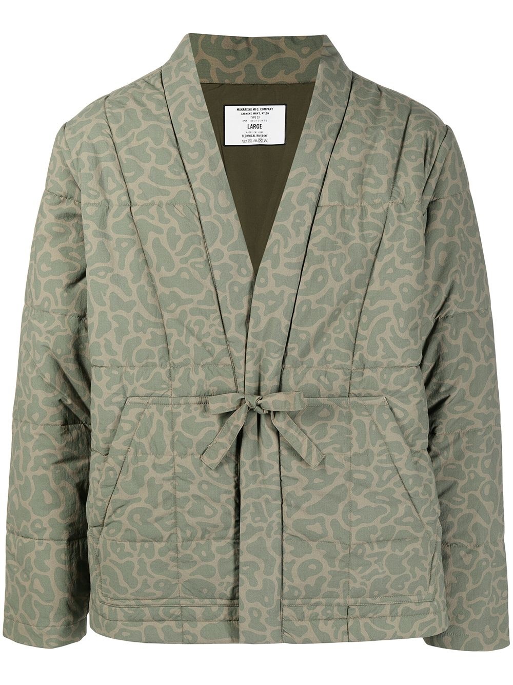 padded tie-waist jacket woodland ripstop weave padded design wrap design tied waist plunging V-neck long sleeves straight hem Imported Composition Nylon 100% SIZE & FIT Model measurements Height 6 ft 0 in(1.83 m) Bust/Chest 37.79 in(96 cm) Hips 37 in(94 cm) Waist 30.31 in(77 cm) FittingInformation This piece fits true to size. We recommend you get your regular size Cut for a loose fit Made with a mid-weight non-stretch fabric