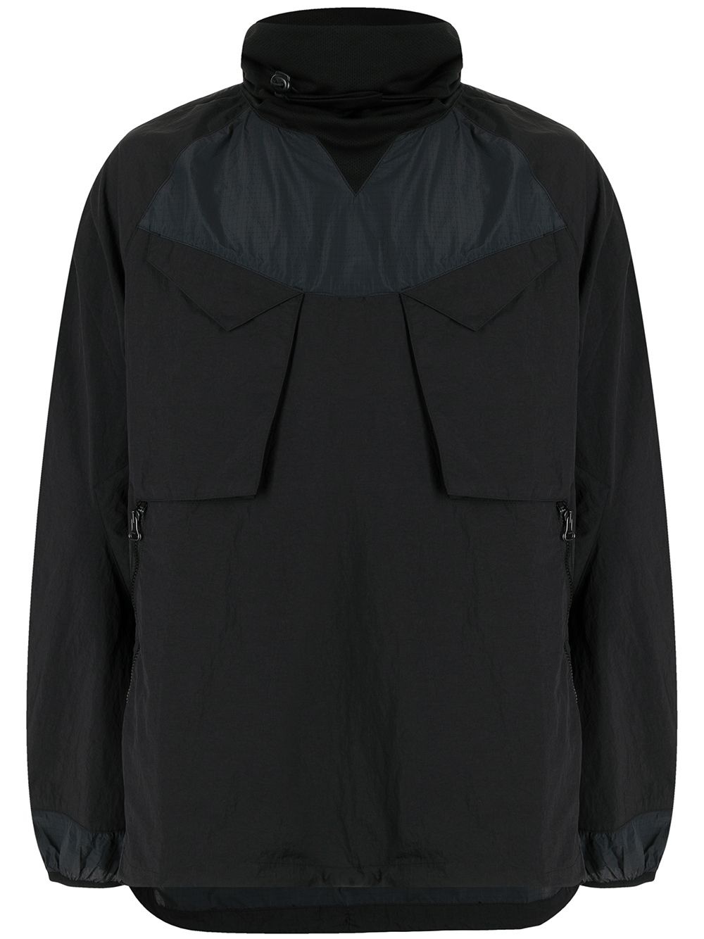 pullover funnel-neck jacket Highlights - Black - Recycled nylon - Panelled design - Funnel neck - Long sleeves - Elasticated cuffs - Two chest patch pockets Imported Composition Recycled Nylon 100% SIZE & FIT Model measurements Height 6 ft 0 in(1.83 m) Bust/Chest 37.79 in(96 cm) Hips 37 in(94 cm) Waist 30.31 in(77 cm) FittingInformation This piece fits true to size. We recommend you get your regular size Cut for a loose fit Made with a mid-weight non-stretch fabric