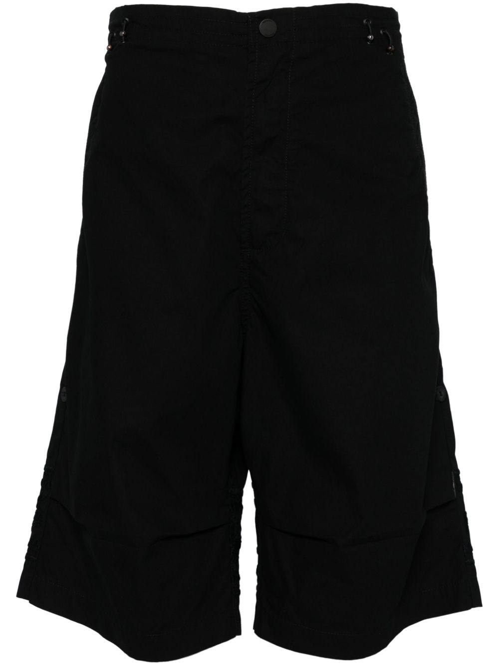 Thar desert cargo shorts Highlights - Black - Organic cotton - Pleat detailing - Embroidery detailing - Two side inset pockets - Two side slit pockets - Rear stud-fastening pocket - Concealed fly and button fastening - Knee-length Imported Composition Organic Cotton 100%