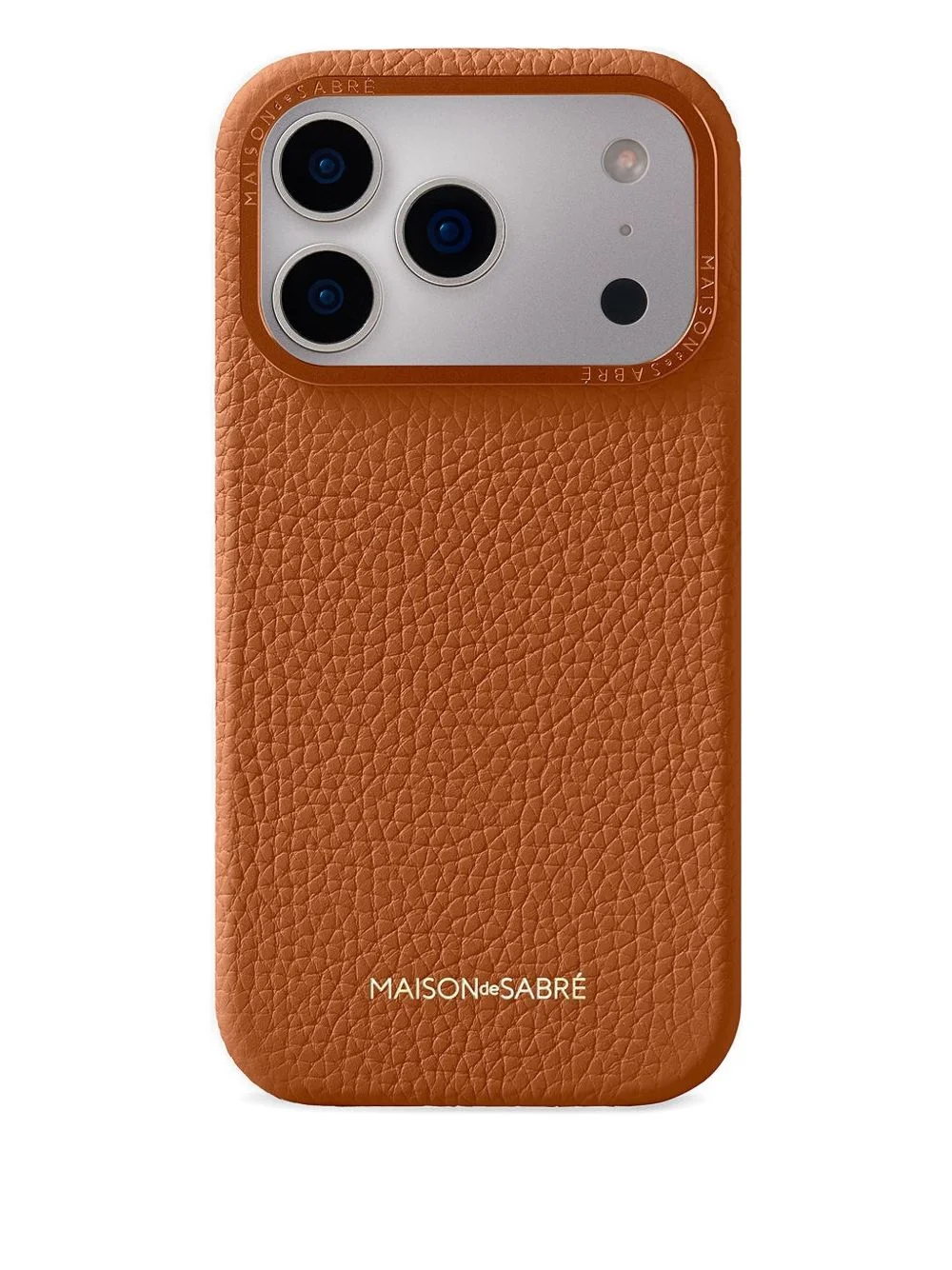logo-leterring iPhone 17 pro max case Highlights - Pecan brown - Aluminium camera guard - Sculpted button ports - Magsafe compatible - Scratch-resistant interior Imported Composition Outer: Polycarbonite 100%, Grained Calf Leather 100% Lining: Microfibre 100%
