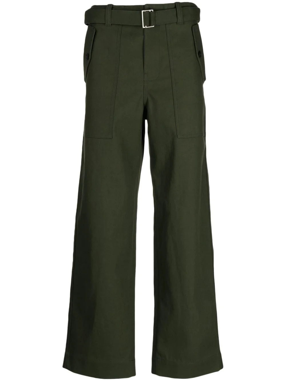 belted-waist straight-leg trousers Highlights - Olive green - Cotton - Straight leg - Belted waist - Mid-rise - Belt loops - Concealed front fastening - Two side flap pockets - Two rear flap pockets Imported Composition Body: Cotton 100% Washing instructions Machine Wash