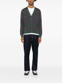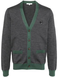 Bold Fox Head Patch cardigan Highlights - Dark grey - Wool - Front button fastening - Embroidered bold fox head patch on the chest - Two front patch pockets - Contrasting trim - V-neck Imported Composition Wool 100% SIZE & FIT Model measurements Height 6 ft 3 in(1.9 m) Bust/Chest 35.03 in(89 cm) Hips 36.61 in(93 cm) Waist 29.13 in(74 cm) FittingInformation Designed for a slim fit, offering a comfortable fit that sits just away from the body The ribbed hem offers a close, comfortable fit Made with a midweight knit, this piece offers some stretch