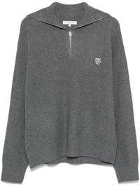 Bold Fox Head-patch ribbed sweater Highlights - Medium grey - Ribbed knit - Signature bold fox head patch - Half front zip fastening - Spread collar - Long sleeves - Straight hem Imported Composition Wool 47%, Viscose 38%, Polyamide 10%, Cashmere 5% SIZE & FIT Model measurements Height 6 ft 2 in(1.87 m) Bust/Chest 36.22 in(92 cm) Hips 37 in(94 cm) Waist 27.95 in(71 cm) FittingInformation Designed for a relaxed fit, this piece allows for comfort and movement when worn Made with a midweight knit, this piece offers some stretch