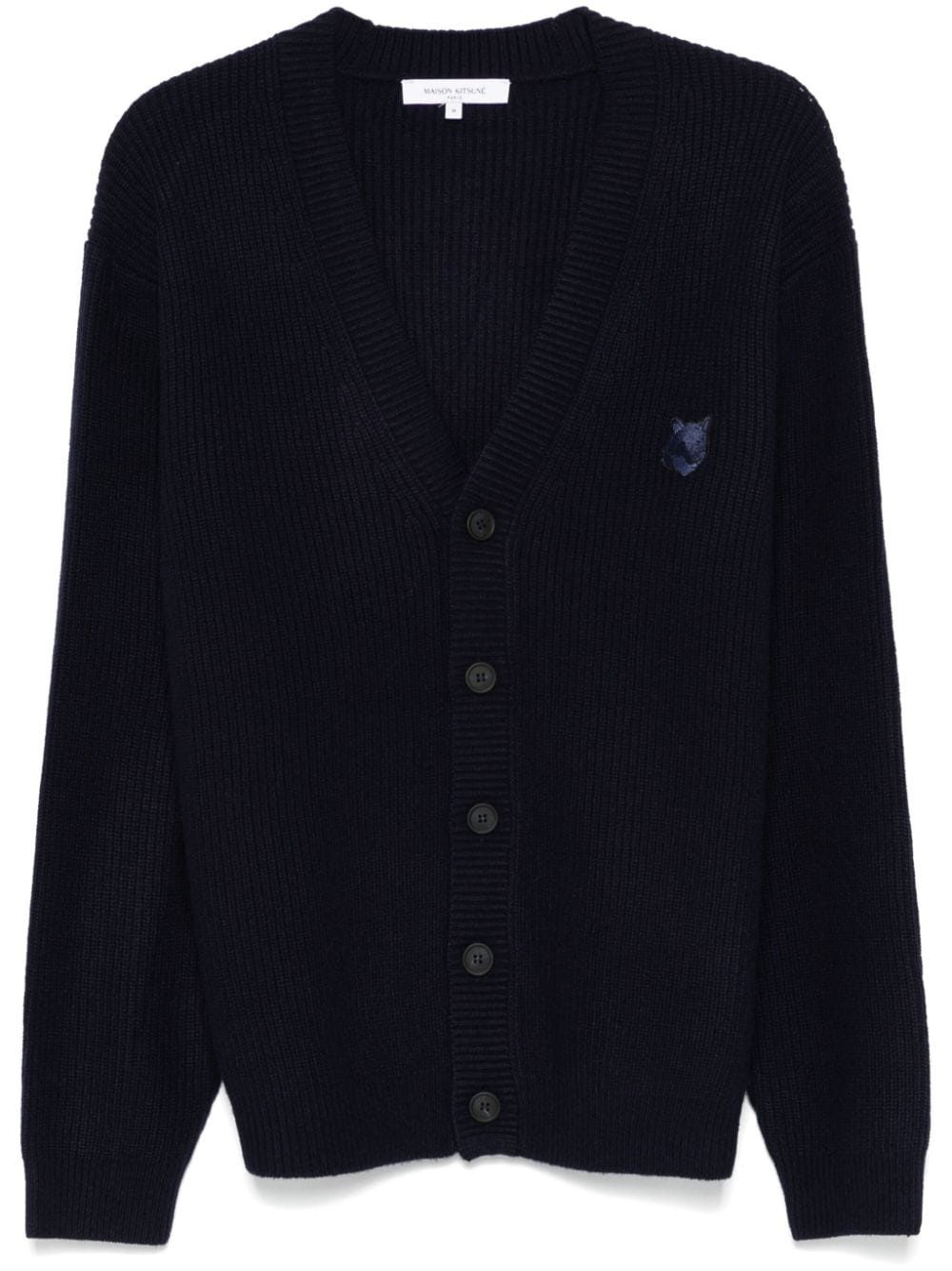 Bold Fox Head ribbed cardigan Highlights - Oxford blue - Ribbed knit - Bold fox head motif - Front button fastening - Drop shoulder - Long sleeves - Straight hem Imported Composition Wool 47%, Viscose 38%, Polyamide 10%, Cashmere 5% SIZE & FIT Model measurements Height 6 ft 2 in(1.87 m) Bust/Chest 36.22 in(92 cm) Hips 37 in(94 cm) Waist 27.95 in(71 cm) Measurement CHEST 43.3 in(110 cm) LENGTH 24.8 in(63 cm) SLEEVE LENGTH 23.22 in(59 cm) Shoulder Width 18.5 in(47 cm) FittingInformation Designed for a relaxed fit, this piece allows for comfort and movement when worn The ribbed hem offers a close, comfortable fit Made with a midweight knit, this piece offers some stretch