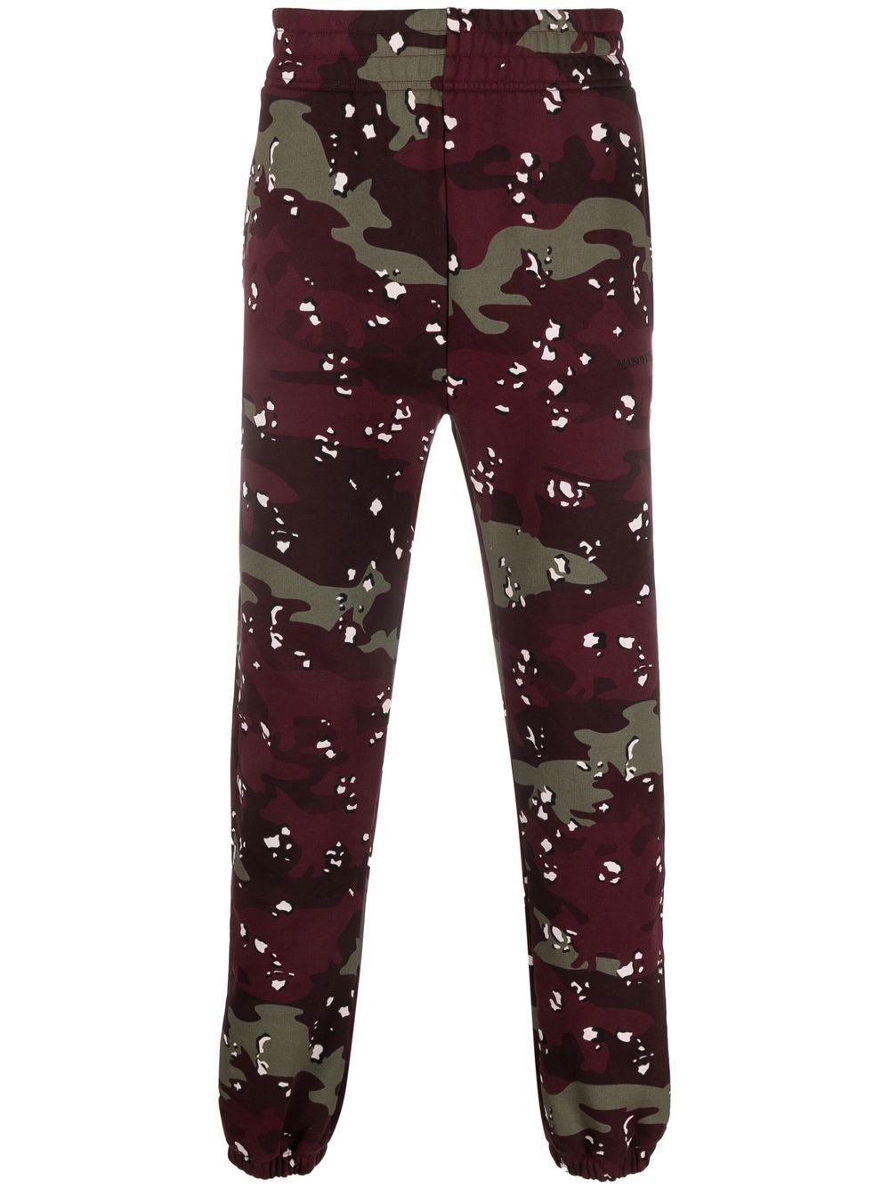 camouflage-print cotton joggers burgundy olive green cotton camouflage print embroidered logo to the front elasticated waistband tapered leg elasticated ankles two side inset pockets Imported Composition Cotton 100% SIZE & FIT Model measurements Height 6 ft 2 in(1.88 m) Bust/Chest 36.61 in(93 cm) Hips 35.82 in(91 cm) Waist 27.95 in(71 cm) FittingInformation This piece fits true to size. We recommend you get your regular size Designed to be loose over the leg with a fitted waist and hem Made with a mid-weight fabric Washing instructions Machine Wash