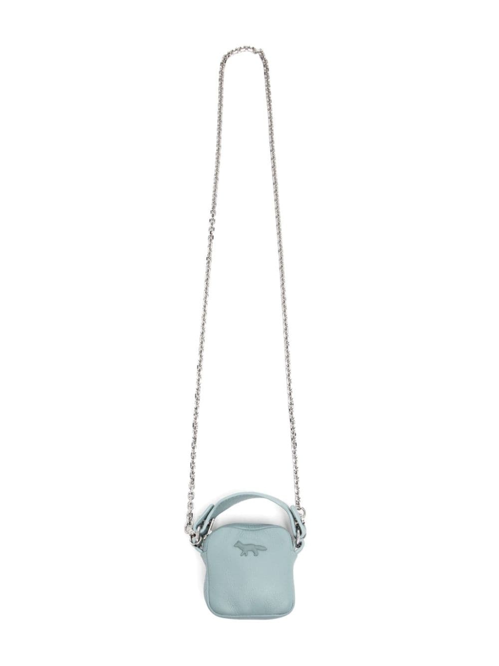 cloud mini coins purse Highlights - Placid - Calf leather - Smooth grain - Top zip fastening - Single top handle - Removable handle with collar studs - Silver-tone hardware - Detachable chain-link shoulder strap - Tonal metal profile fox at the front - Main compartment - Cotton lining - This piece comes complete with a protective dust bag. - Original box included. Imported Composition Lining: Cotton 100% Outer: Leather 100% SIZE & FIT Measurement DEPTH 1.37 in(3.5 cm) HANDLE 1.18 in(3 cm) HEIGHT 2.75 in(7 cm) STRAP 19.68 in(50 cm) WIDTH 2.75 in(7 cm)
