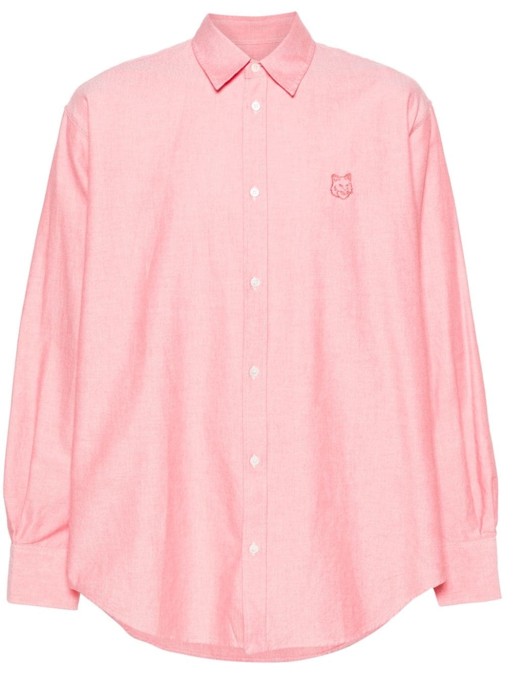Contour Fox Head-embroidery cotton shirt Highlights - Salmon pink - Cotton - Twill weave - Long sleeves with buttoned cuffs - Embroidered contour fox head at the chest - Rear box-pleat detail - Curved hem - Front button fastening Imported Composition Cotton 100% SIZE & FIT Model measurements Height 6 ft 1 in(1.85 m) Bust/Chest 36.61 in(93 cm) Hips 36.61 in(93 cm) Waist 28.74 in(73 cm) FittingInformation Designed to be unstructured, offering a loose fit throughout Made from a midweight non-stretch fabric This piece fits true to size – take your usual size