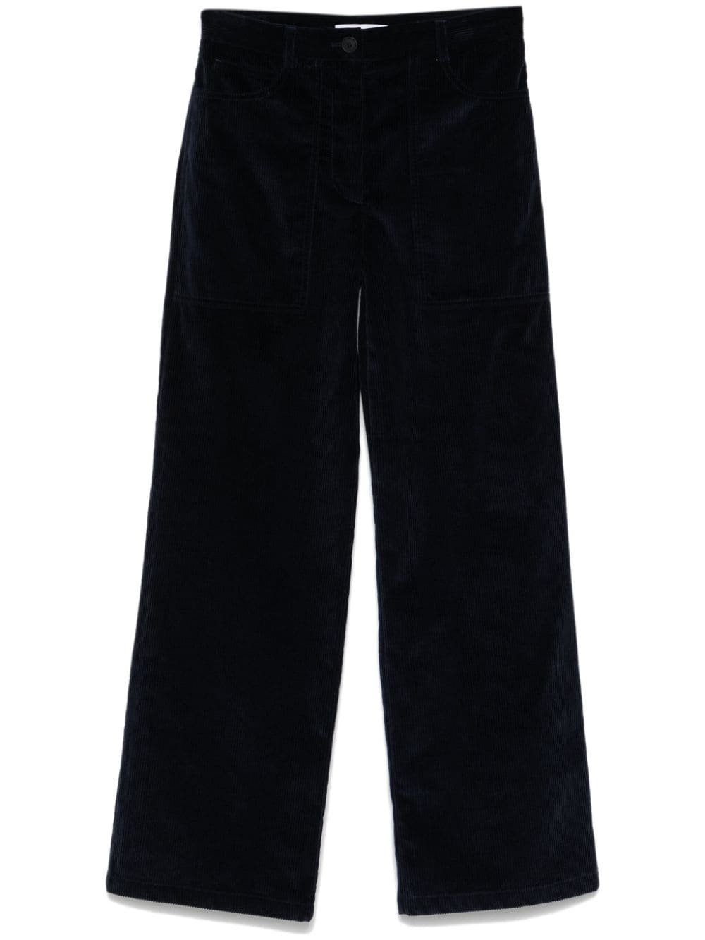 corduroy trousers Highlights - Navy blue - Cotton - Corduroy - Concealed fly and button fastening - Belt loops - High waist - Classic five pockets - Embroidered logo to the rear - Straight leg Imported Composition Lining: Cotton 100% Outer: Cotton 100%
