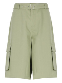 cotton shorts Highlights - Sage green - Front buckle fastening - Belted waist - Two side slit pockets - Two side cargo pockets Imported Composition Cotton 100%