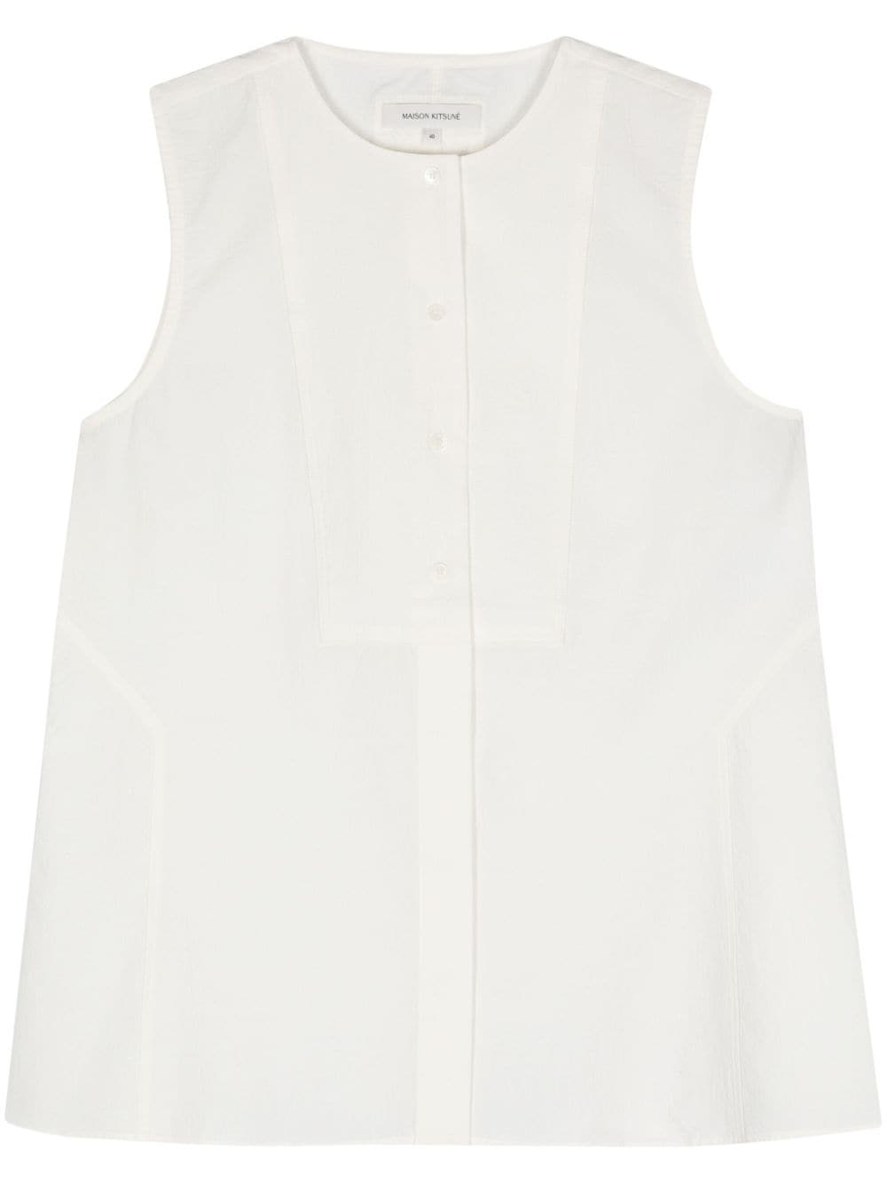 crinkled sleeveless shirt Highlights - White - Cotton - Poplin texture - Crinkled finish - Bib panel - Logo patch to the rear - Logo-engraved buttons - Round neck - Sleeveless - Front button placket - Straight hem - Unlined Imported Composition Cotton 100% Washing instructions Hand Wash