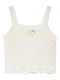crochet tank top Highlights - Light beige - Pull-on style - Square neck - Crochet knit - Sleeveless Imported Composition Outer: