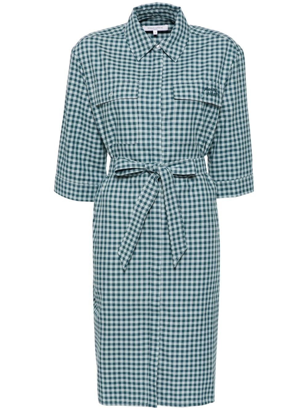 double pocket dress Highlights - Aqua green - Button fastening - Lace-up fastening - Inset pockets - Button fastening pockets Imported Composition Cotton 100% SIZE & FIT Model measurements Height 5 ft 10 in(1.78 m) Bust/Chest 24.4 in(62 cm) Hips 35.43 in(90 cm) Waist 31.88 in(81 cm) FittingInformation Designed to be unstructured, offering a loose fit throughout The belt offers adjustability for fitted preferences Made from a midweight non-stretch fabric