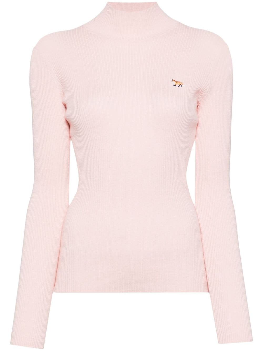 embroidered logo knitted top Highlights - Pale pink - Cotton-wool blend - Ribbed knit - Embroidered logo at the chest - Long sleeves - Mock neck - Straight hem Imported Composition Body: Cotton 50%, Wool 50% SIZE & FIT Model measurements Height 5 ft 10 in(1.77 m) Bust/Chest 31.49 in(80 cm) Hips 35.43 in(90 cm) Waist 25.19 in(64 cm) FittingInformation Designed for a slim fit that sits just away from the body offering a close yet comfortable fit Made with a midweight knit, this piece offers some stretch
