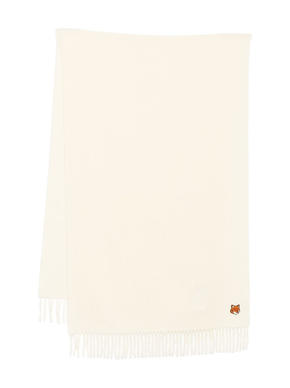 embroidered-logo scarf Highlights - Cream white - Fringed edge - Wraparound style Made in Italy Composition Wool 100% SIZE & FIT Measurement LENGTH 72.04 in(183 cm) WIDTH 23.03 in(58.5 cm) Washing instructions Dry Clean Only