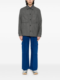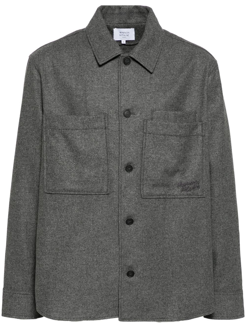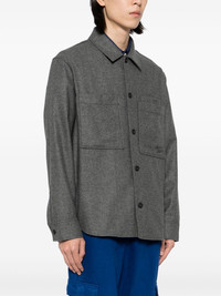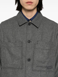 flannel shirt jacket Highlights - Melange grey - Two chest patch pockets - Buttoned-cuff sleeves - Embroidered logo to the front - Spread collar Imported Composition Wool 70%, Polyamide 30% SIZE & FIT Model measurements Height 6 ft 2 in(1.87 m) Bust/Chest 33.07 in(84 cm) Hips 35.43 in(90 cm) Waist 26.77 in(68 cm) FittingInformation Designed for a relaxed fit, this piece allows for comfort and movement when worn Made from a midweight non-stretch fabric