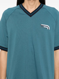 Flash Fox t-shirt Highlights - Lake blue - Cotton - Jersey texture - Rubber flash fox at the chest - V-neck - Ribbed band collar - Stripe detailing - Short raglan sleeves - Ribbed cuffs Imported Composition Cotton 100% SIZE & FIT Model measurements Height 6 ft 1 in(1.85 m) Bust/Chest 35.43 in(90 cm) Hips 36.22 in(92 cm) Waist 28.74 in(73 cm) FittingInformation Designed for a relaxed fit, this piece allows for comfort and movement when worn Made from a midweight non-stretch fabric, this piece offers minimal elasticity when worn This piece fits close in all sizes – take your usual size