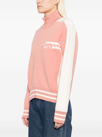 flash fox zipped cardigan Highlights - Cream white/pink - Cotton blend - Fine knit - Knitted construction - Mock neck - Front zip fastening - Long sleeves - Jacquard - Horizontal stripe pattern - Two front patch pockets Imported Composition Body: Cotton 55%, Polyamide 45% SIZE & FIT Model measurements Height 5 ft 9 in(1.76 m) Bust/Chest 31.1 in(79 cm) Hips 35.03 in(89 cm) Waist 24.4 in(62 cm) FittingInformation Designed for a slim fit that sits just away from the body offering a close yet comfortable fit The ribbed hem offers a close, comfortable fit Made with a midweight knit, this piece offers some stretch