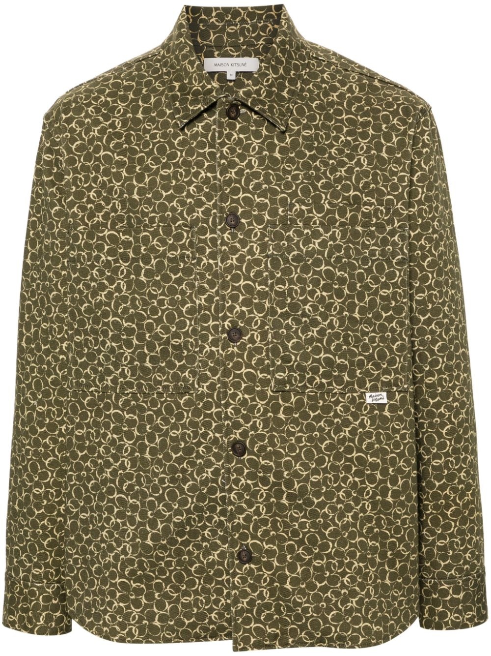 floral-print cotton shirt jacket Highlights - Khaki - Cotton - Gabardine weave - All-over floral print - Classic collar - Front button fastening - Long sleeves with buttoned cuffs - Three chest patch pockets - Curved hem Imported Composition Cotton 100% SIZE & FIT Model measurements Height 6 ft 2 in(1.89 m) Bust/Chest 39.76 in(101 cm) Hips 37.4 in(95 cm) Waist 29.92 in(76 cm) FittingInformation Designed for a regular fit, allowing for a comfortably loose fit throughout the body Made from a midweight non-stretch fabric This piece fits true to size – take your usual size