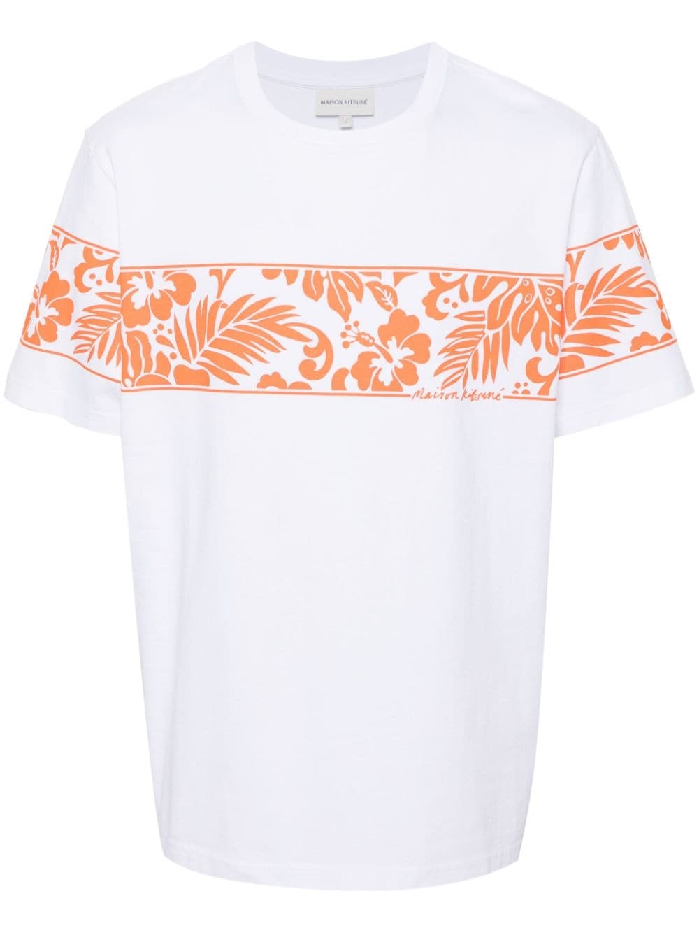 floral-print cotton T-shirt Highlights - White - Cotton - Lightweight jersey - Floral print - Logo print to the front - Crew neck - Short sleeves - Straight hem Imported Composition Cotton 100% SIZE & FIT Model measurements Height 6 ft 2 in(1.88 m) Bust/Chest 36.61 in(93 cm) Hips 36.61 in(93 cm) Waist 29.92 in(76 cm) FittingInformation Designed for a relaxed fit, this piece allows for comfort and movement when worn Made from a midweight non-stretch fabric, this piece offers minimal elasticity when worn This piece fits true to size – take your usual size