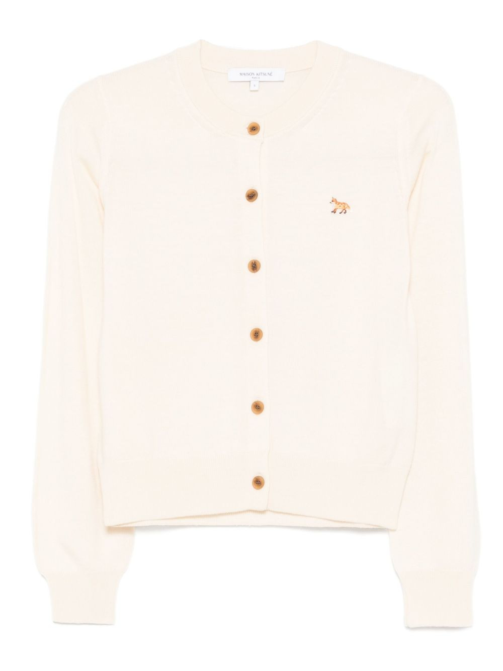 fox-embroidered buttoned cardigan Highlights - Off-white - Wool knit - Embroidered fox - Button front - Long sleeves - Ribbed cuffs Imported Composition Wool 100% SIZE & FIT Model measurements Height 5 ft 9 in(1.75 m) Bust/Chest 34.64 in(88 cm) Hips 36.61 in(93 cm) Waist 26.37 in(67 cm) Washing instructions Hand Wash