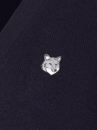 Fox Head button cardigan Highlights - Blue - V-neck - Fox head embroidered patch - Button closure - Long sleeves Imported Composition Lambs Wool 100% Washing instructions Read Manufacturer Guidelines