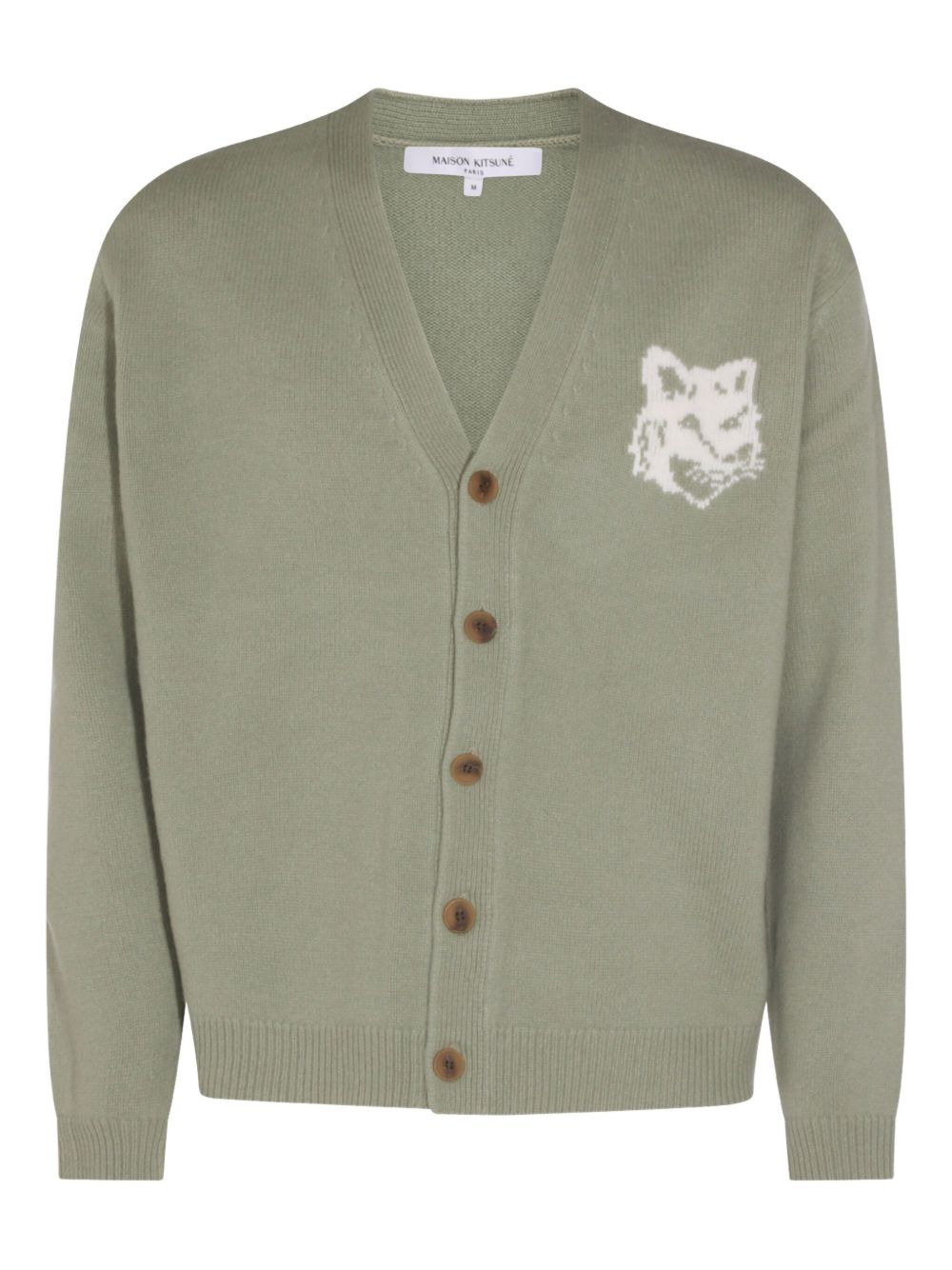 Fox Head-intarsia cardigan Highlights - Sage green - Signature fox motif - V-neck - Button fastening - Long sleeves - Ribbed trim - Wool Imported Composition Wool 100% Washing instructions Read Manufacturer Guidelines