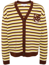Fox head intarsia striped cardigan Highlights - Pecan/wild bergamot - Wool - Front button fastening - Logo print at the chest - Stripe print - Ribbed cuffs and hem - Long sleeves Imported Composition Wool 100% Washing instructions Hand Wash