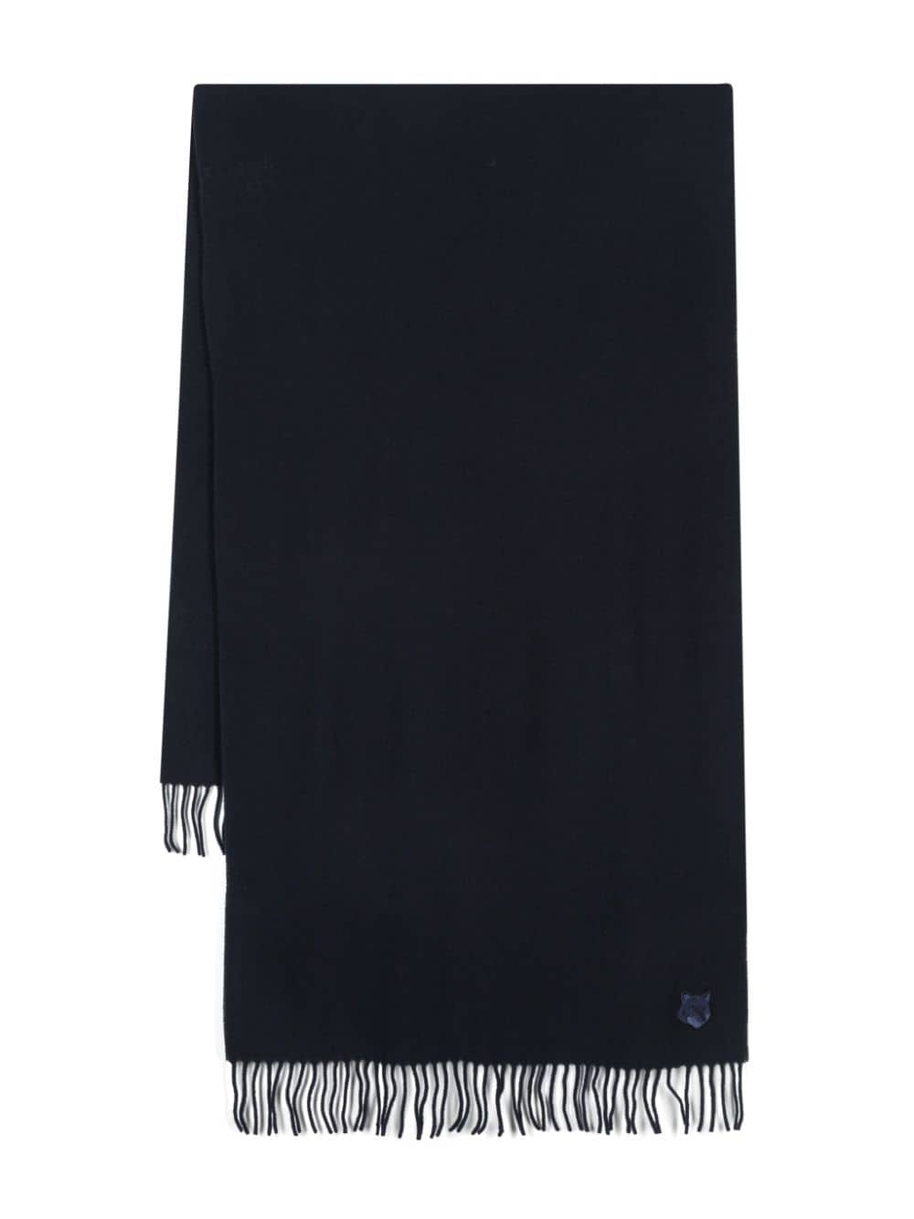 Fox-patch scarf Highlights - Ink blue - Wool - Non-brushed fleece - Signature fox patch - Rectangle shape - Fringed edge - Wraparound style Made in Italy Composition Wool 100% SIZE & FIT Measurement LENGTH 78.74 in(200 cm) WIDTH 23.62 in(60 cm)