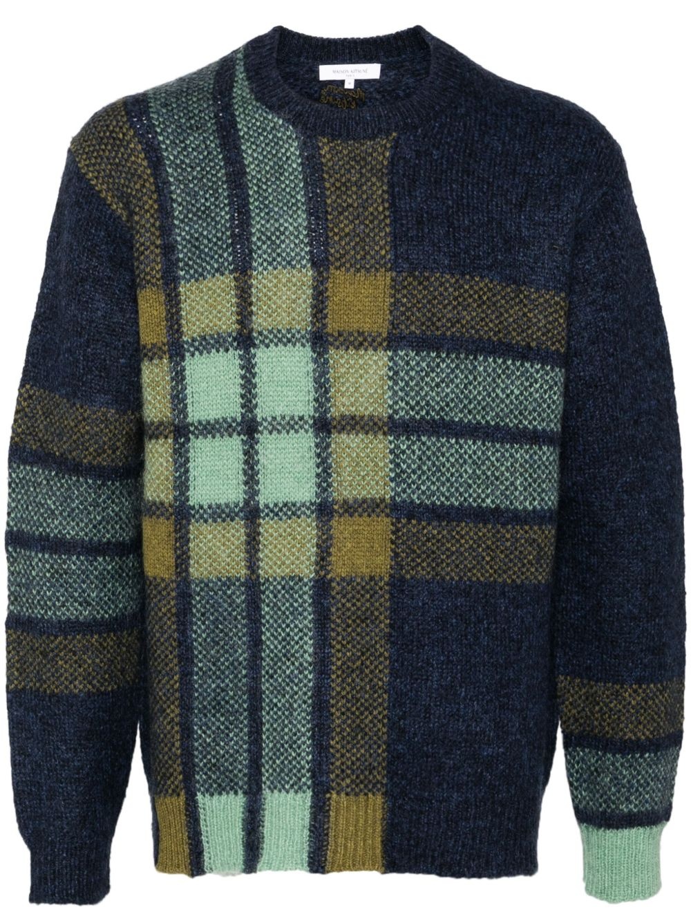 graphic check intarsia jumper Highlights - Ink blue - Check pattern - Knitted construction - Crew neck - Embroidered logo to the rear - Long sleeves - Ribbed cuffs and hem Imported Composition Wool 38%, Polyamide 34%, Mohair 28% SIZE & FIT Model measurements Height 6 ft 1 in(1.85 m) Bust/Chest 35.43 in(90 cm) Hips 36.22 in(92 cm) Waist 28.74 in(73 cm) FittingInformation Designed for a regular fit, offering a comfortable loose fit throughout the body The ribbed hem offers a close, comfortable fit Made with a midweight knit, this piece offers some stretch This piece fits very large – take two sizes down Washing instructions Hand Wash