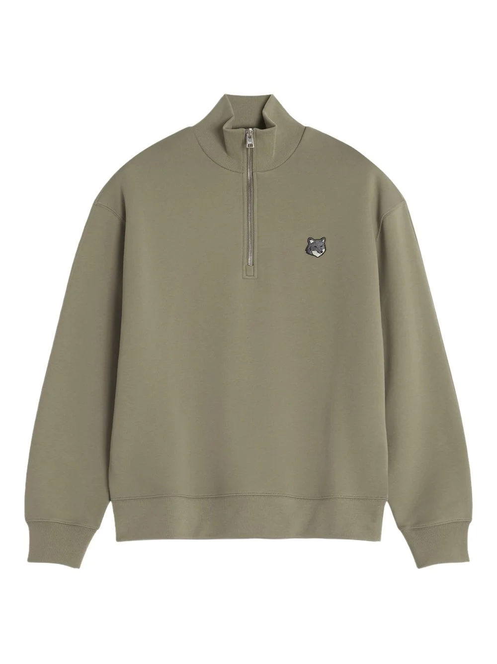 half-zip fox head-embroidered sweatshirt Highlights - Beige - Fox head-applique - Zip-fastening - Turtleneck - Long-sleeves - Ribbed hem and cuffs Imported Composition Organic Cotton 100% Washing instructions Machine Wash