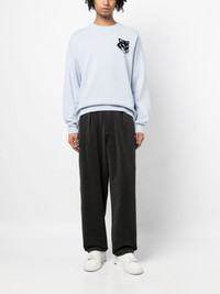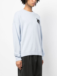 intarsia-knit logo wool jumper Highlights - Light blue/black - Wool - Knitted construction - Intarsia-knit logo - Crew neck - Long sleeves - Ribbed cuffs and hem Made in Italy Composition Body: Wool 100% SIZE & FIT Model measurements Height 6 ft 2 in(1.88 m) Bust/Chest 31.88 in(81 cm) Hips 35.82 in(91 cm) Waist 27.55 in(70 cm) FittingInformation Designed to be unstructured, offering a loose fit throughout Made with a midweight knit, this piece offers some stretch This piece fits true to size – take your usual size Washing instructions Hand Wash