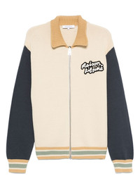 knitted college cardigan Highlights - Light beige - Front zip fastening - Two side inset pockets - Ribbed cuffs and hem - Chenille logo patch Imported Composition Cotton 70%, Polyamide 30% SIZE & FIT Model measurements Height 6 ft 2 in(1.89 m) Bust/Chest 36.22 in(92 cm) Hips 35.82 in(91 cm) Waist 28.54 in(72.5 cm) FittingInformation Designed for a relaxed fit, this piece allows for comfort and movement when worn The ribbed hem offers a close, comfortable fit Made with a midweight knit, this piece offers some stretch