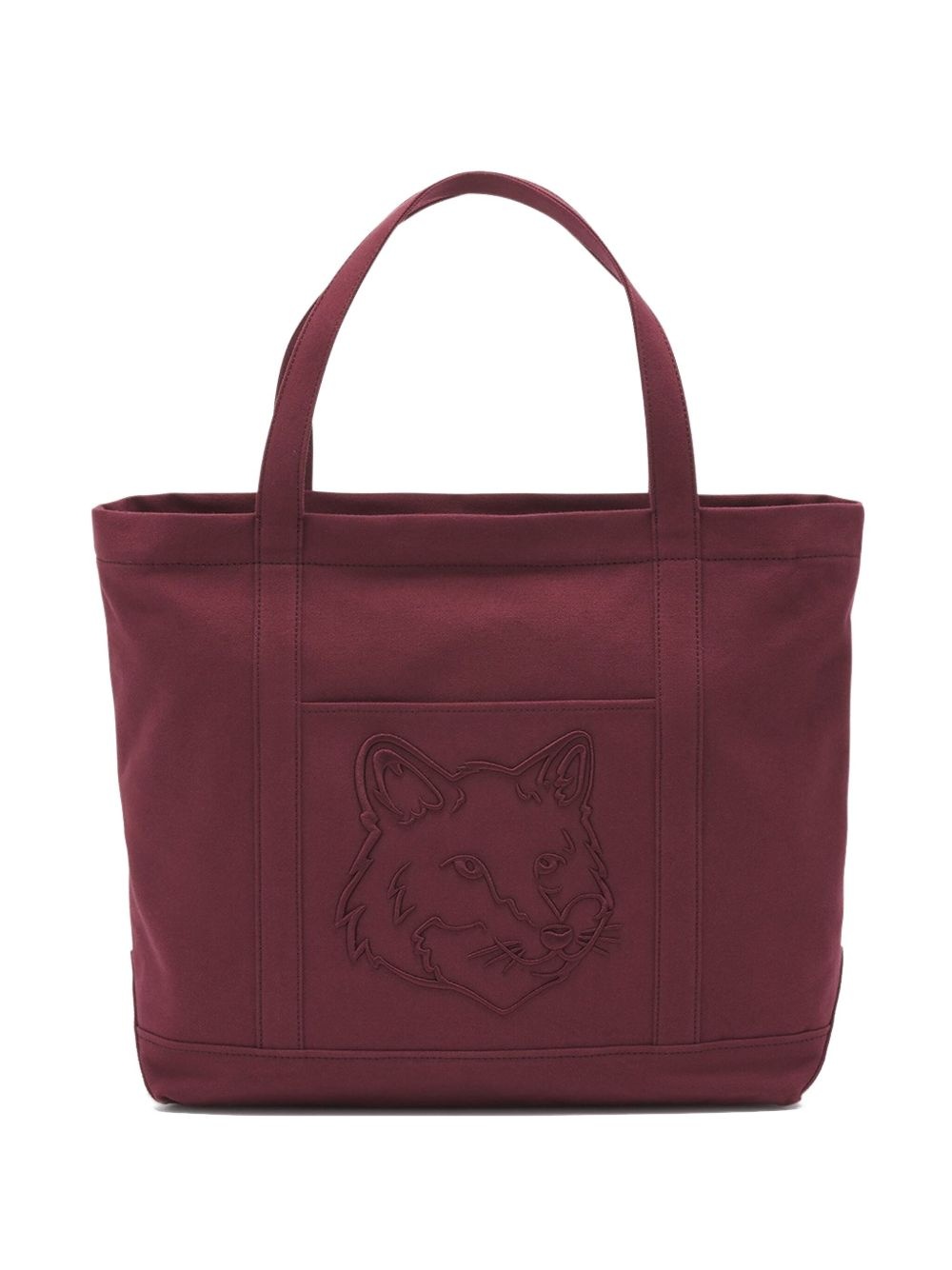 large Fox Head-embroidered tote bag Highlights - Dark red - Open top - Two flat top handles - Slip pocket to the front - This piece comes complete with a protective dust bag. Imported Composition Lining: Cotton 100% Outer: Cotton 100% SIZE & FIT Measurement DEPTH 5.51 in(14 cm) HEIGHT 14.17 in(36 cm) WIDTH 19.09 in(48.5 cm)