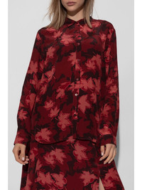 leaf-print shirt Highlights - Bordeaux red - Leaf print - Front button fastening - Classic collar - Long sleeves - Buttoned cuffs - Gathered detailing - Straight hem Imported Composition Viscose 100%