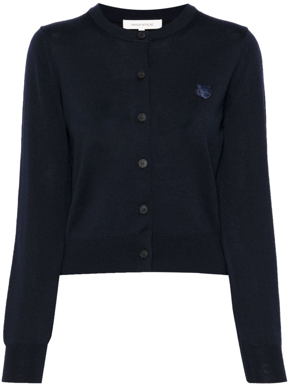 logo-applique wool cardigan Highlights - Navy blue - Wool - Applique logo - Ribbed detailing - Front button fastening - Round neck - Long sleeves - Straight hem Imported Composition Wool 100% SIZE & FIT Model measurements Height 5 ft 10 in(1.78 m) Bust/Chest 32.67 in(83 cm) Hips 37 in(94 cm) Waist 25.59 in(65 cm) Measurement SLEEVE LENGTH 23.62 in(60 cm) LENGTH 18.89 in(48 cm) BUST 35.43 in(90 cm) Shoulder Width 12.99 in(33 cm) FittingInformation Designed to be unstructured, offering a loose fit throughout Made with a midweight knit, this piece offers some stretch This piece fits true to size – take your usual size Washing instructions Hand Wash