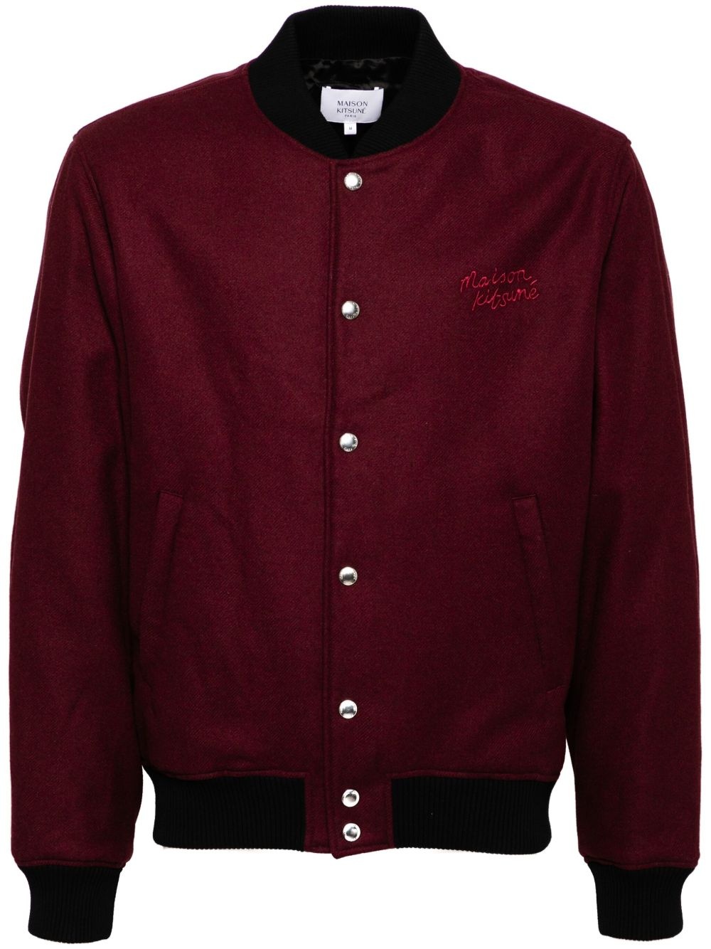 logo-embroidered bomber jacket Highlights - Burgundy - Front press-stud fastening - Two side inset pockets - Baseball collar - Long sleeves Imported Composition Outer: Wool 70%, Polyamide 30% Lining: Viscose 100% SIZE & FIT Model measurements Height 6 ft 2 in(1.87 m) Bust/Chest 33.07 in(84 cm) Hips 35.43 in(90 cm) Waist 26.77 in(68 cm) FittingInformation Designed for a regular fit, allowing for a comfortably loose fit throughout the body The ribbed hem offers a close, comfortable fit Made from a midweight non-stretch fabric