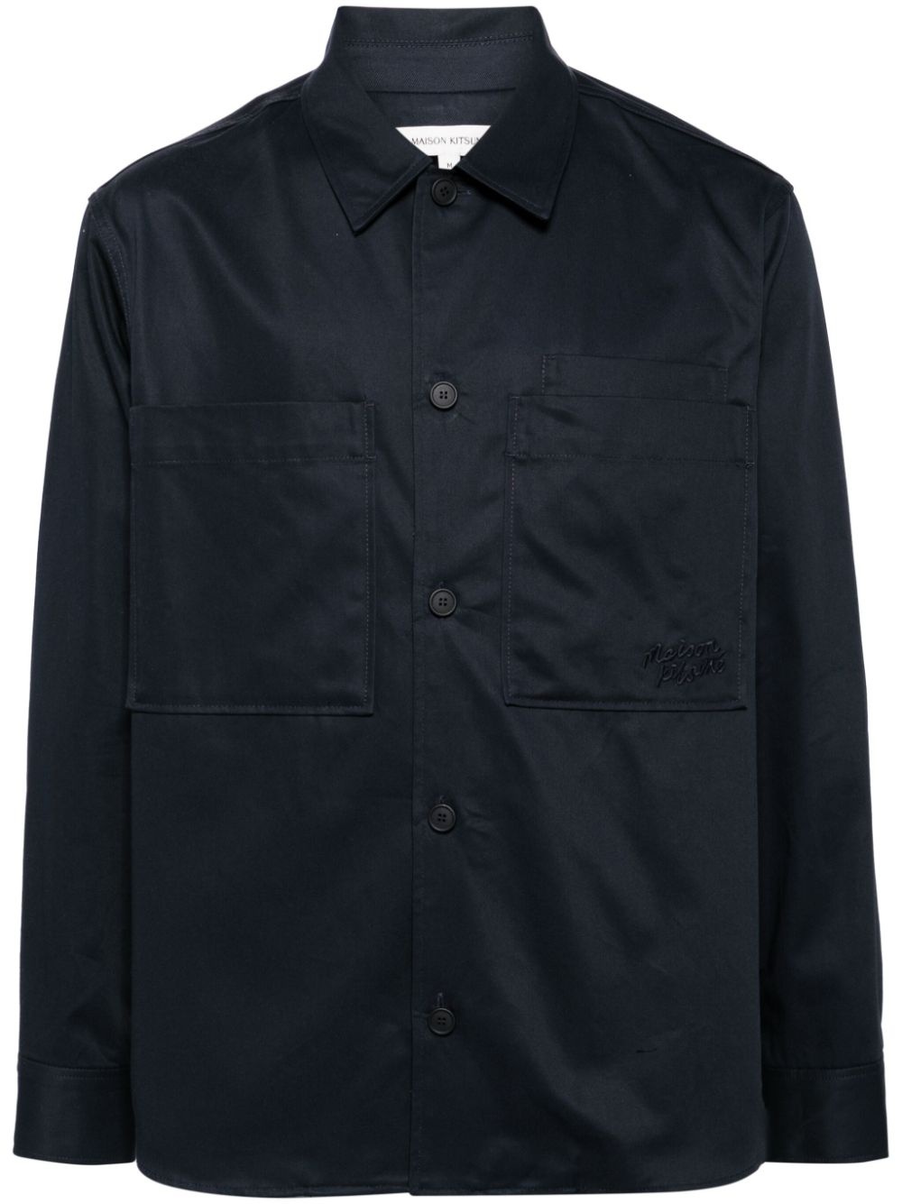 logo-embroidered cotton shirt Highlights - Navy blue - Cotton - Embroidered logo to the front - Classic collar - Front button fastening - Long sleeves - Buttoned cuffs - Chest patch pockets - Curved hem Imported Composition Cotton 100% SIZE & FIT Model measurements Height 6 ft 2 in(1.87 m) Bust/Chest 33.07 in(84 cm) Hips 35.43 in(90 cm) Waist 26.77 in(68 cm) FittingInformation Designed to be unstructured, offering a loose fit throughout Made from a midweight non-stretch fabric This piece fits true to size – take your usual size