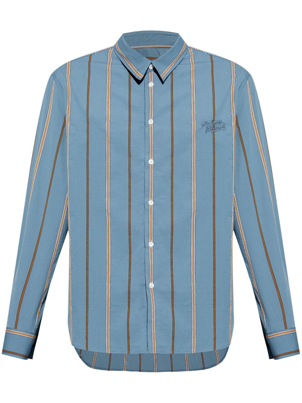 logo-embroidered striped shirt Highlights - Blue/multicolour - Cotton blend - Vertical stripe pattern - Front button fastening - Embroidered logo at the chest - Long sleeves - Buttoned cuffs - Curved hem Imported Composition Cotton 85%, Polyamide 15% Washing instructions Dry Clean Only