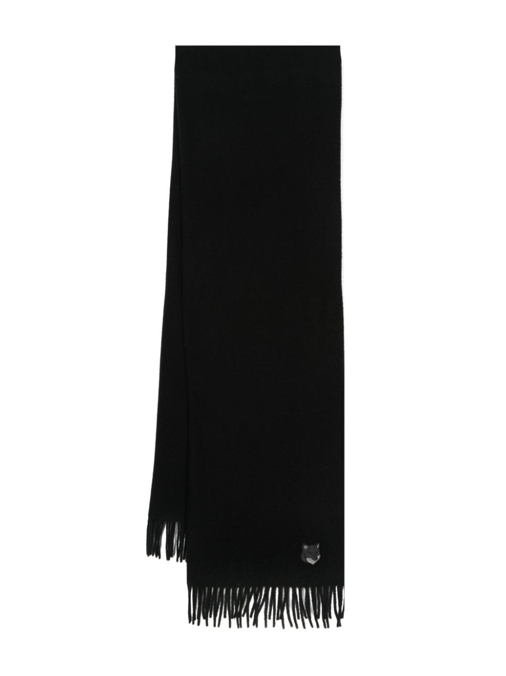 Logo-Embroidered Fringed Wool Scarf