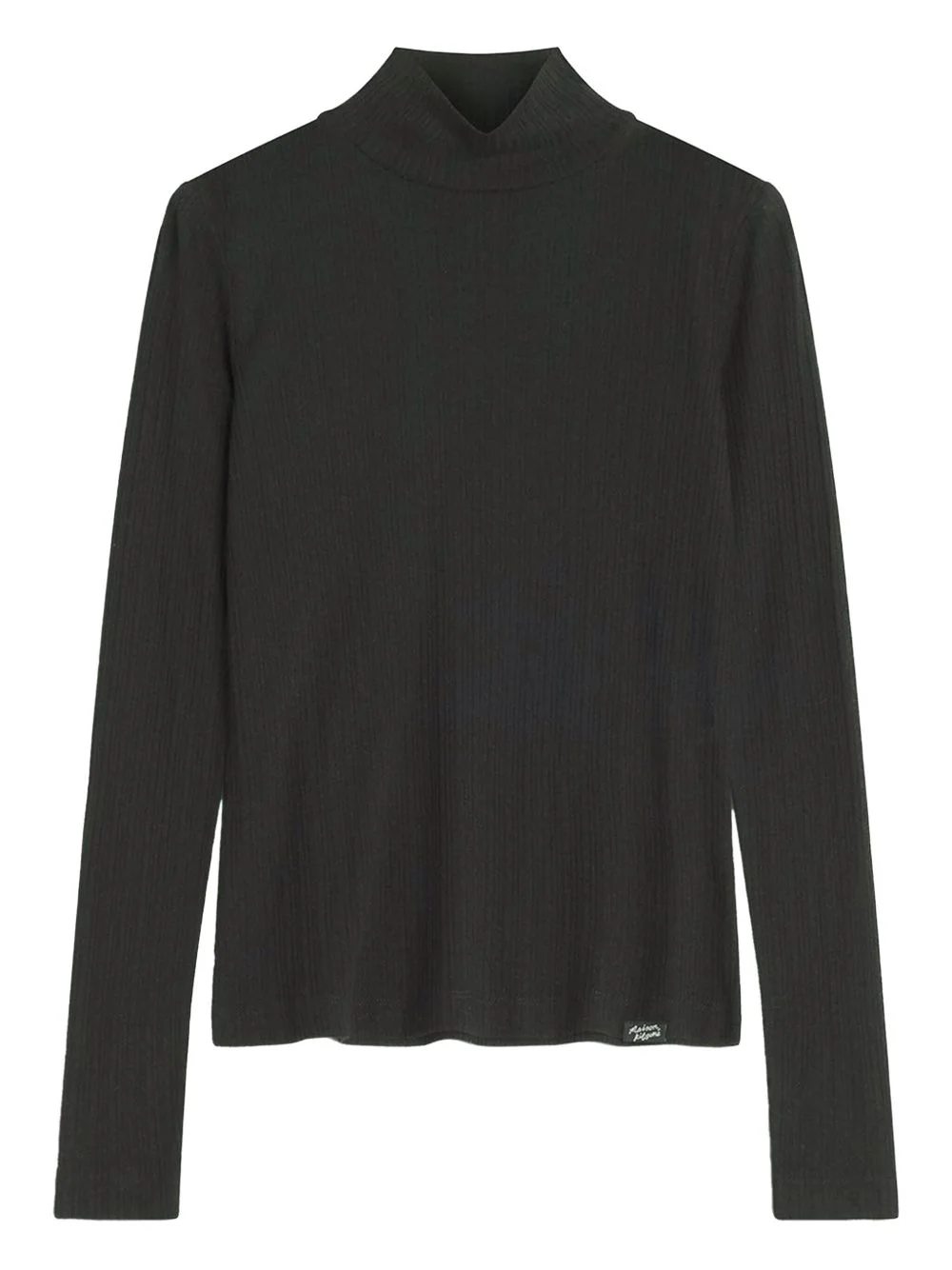 long-sleeve roll-neck top Highlights - Black - Roll neck - Long sleeves - Ribbed knit - Logo detail - Contrast trim Imported Composition Lyocell 70%, Wool 30%