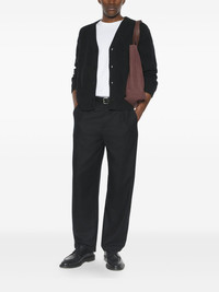 long-sleeves wool cardigan Highlights - Black - Ribbed knit - Button fastening - Back embroidered logo - Long sleeves Imported Composition Body: Wool 100% Washing instructions Read Manufacturer Guidelines