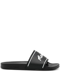 Handwritting slides Highlights - Black/white - Debossed logo to the front - Round open toe - Moulded footbed - Slip-on style - Flat rubber sole Imported Composition Outer: Polyurethane 100% Sole: Polyurethane 100% Lining: Polyurethane 100% SIZE & FIT Measurement HEEL 1.18 in(3 cm) Sole height 0.59 in(1.5 cm)