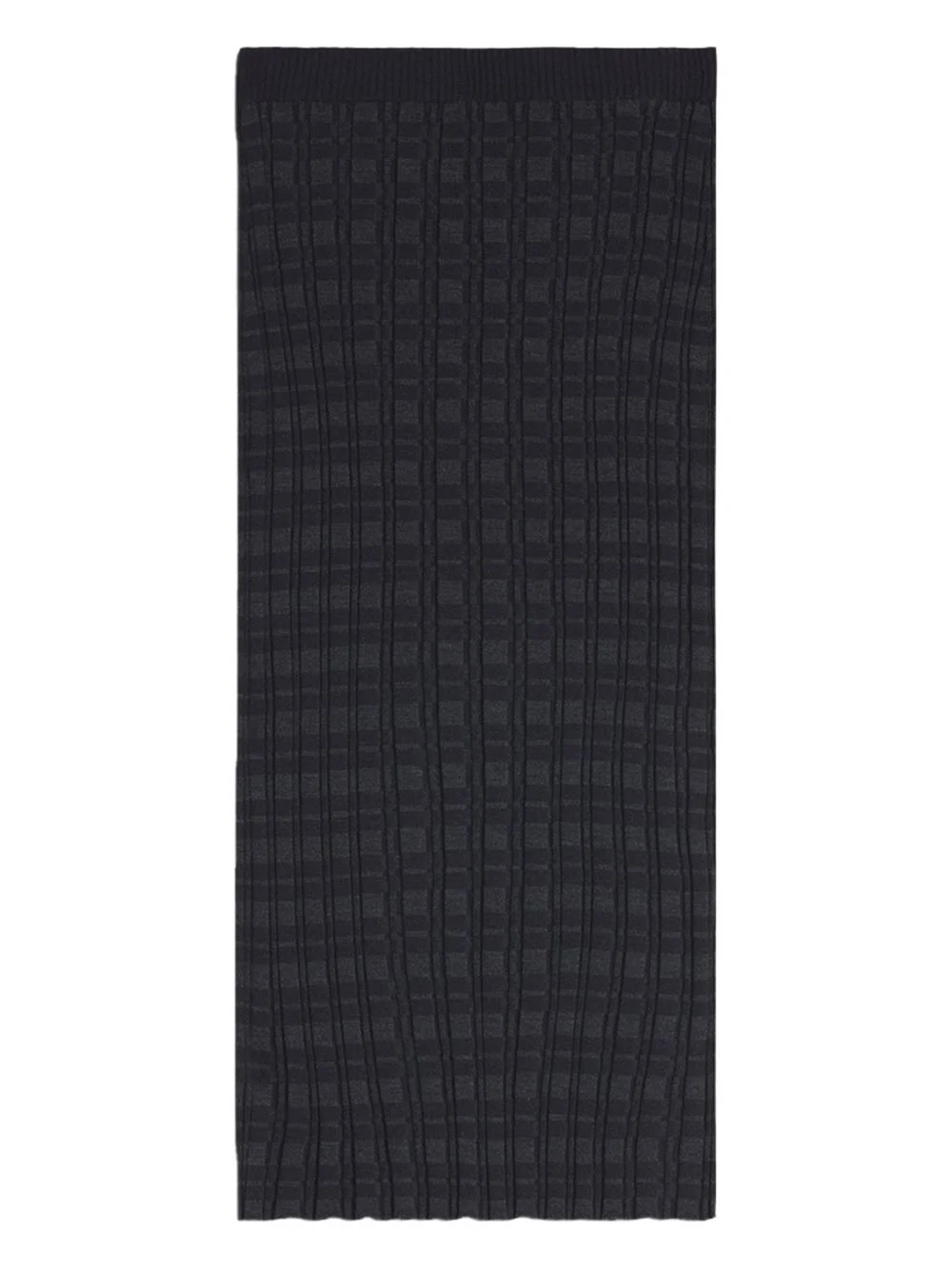 medium grey melange slit skirt Highlights - Navy blue - Wool - Square pattern - Embroidered logo - Ribbed detail - Back slit Imported Composition Body: Wool 100% Washing instructions Read Manufacturer Guidelines