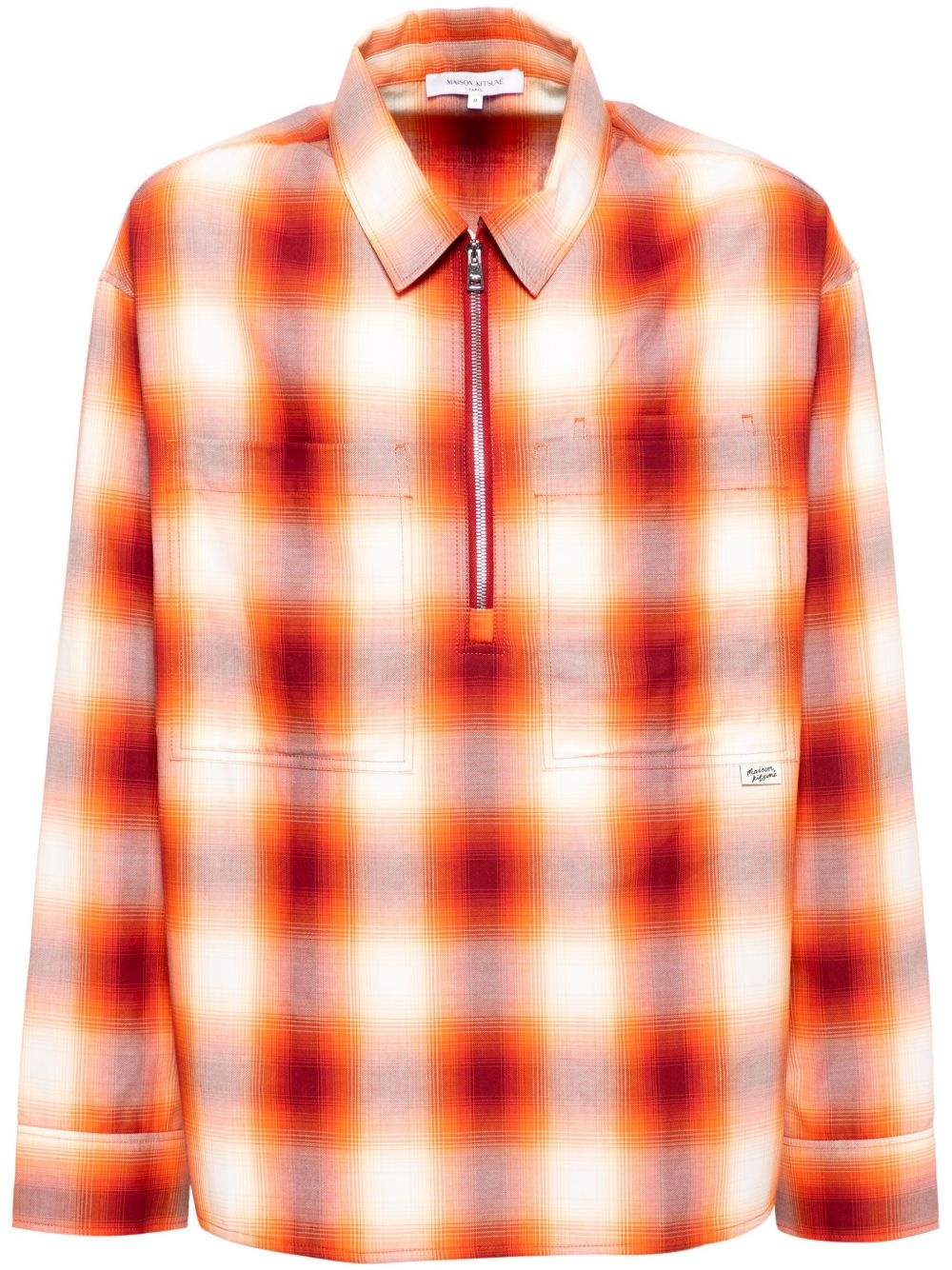 plaid-check shirt Highlights - Orange - Half front zip fastening - Buttoned cuffs - Classic collar - Straight hem Imported Composition Cotton 100% SIZE & FIT Model measurements Height 6 ft 2 in(1.87 m) Bust/Chest 33.07 in(84 cm) Hips 35.43 in(90 cm) Waist 26.77 in(68 cm) FittingInformation Designed for a relaxed fit, this piece allows for comfort and movement when worn Made from a midweight non-stretch fabric Washing instructions Machine Wash