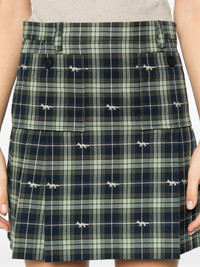 pocket-embellished pleated mini skirt Highlights - Mint green/navy blue - Cotton - Twill weave - Two button-fastening pockets - Concealed side zip fastening - Fox check pattern - Belt loops - Pleat detailing - Straight hem - Thigh-length Imported Composition Lining: Cotton 100% Outer: Cotton 100% SIZE & FIT Model measurements Height 5 ft 10 in(1.78 m) Bust/Chest 33.85 in(86 cm) Hips 36.61 in(93 cm) Waist 26.77 in(68 cm) FittingInformation This mini-length skirt is intended to be worn high on the waist Made from a midweight non-stretch fabric
