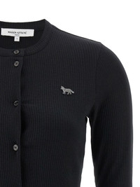 ribbed Baby Fox-patch cardigan Highlights - Black - Ribbed texture - Long sleeves - Crew neck - Button closure - Embroidered baby fox patch Imported Composition Lyocell 64%, Cotton 32%, Lycra 4% Washing instructions Read Manufacturer Guidelines