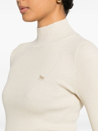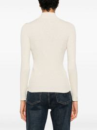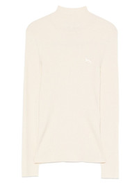 ribbed mock-neck top Highlights - Light cream - Ribbed knit - Mock neck - Long sleeves - Logo detail Imported Composition Wool 55%, Cotton 45% SIZE & FIT Model measurements Height 5 ft 9 in(1.76 m) Bust/Chest 31.88 in(81 cm) Hips 35.43 in(90 cm) Waist 24.8 in(63 cm) Washing instructions Hand Wash