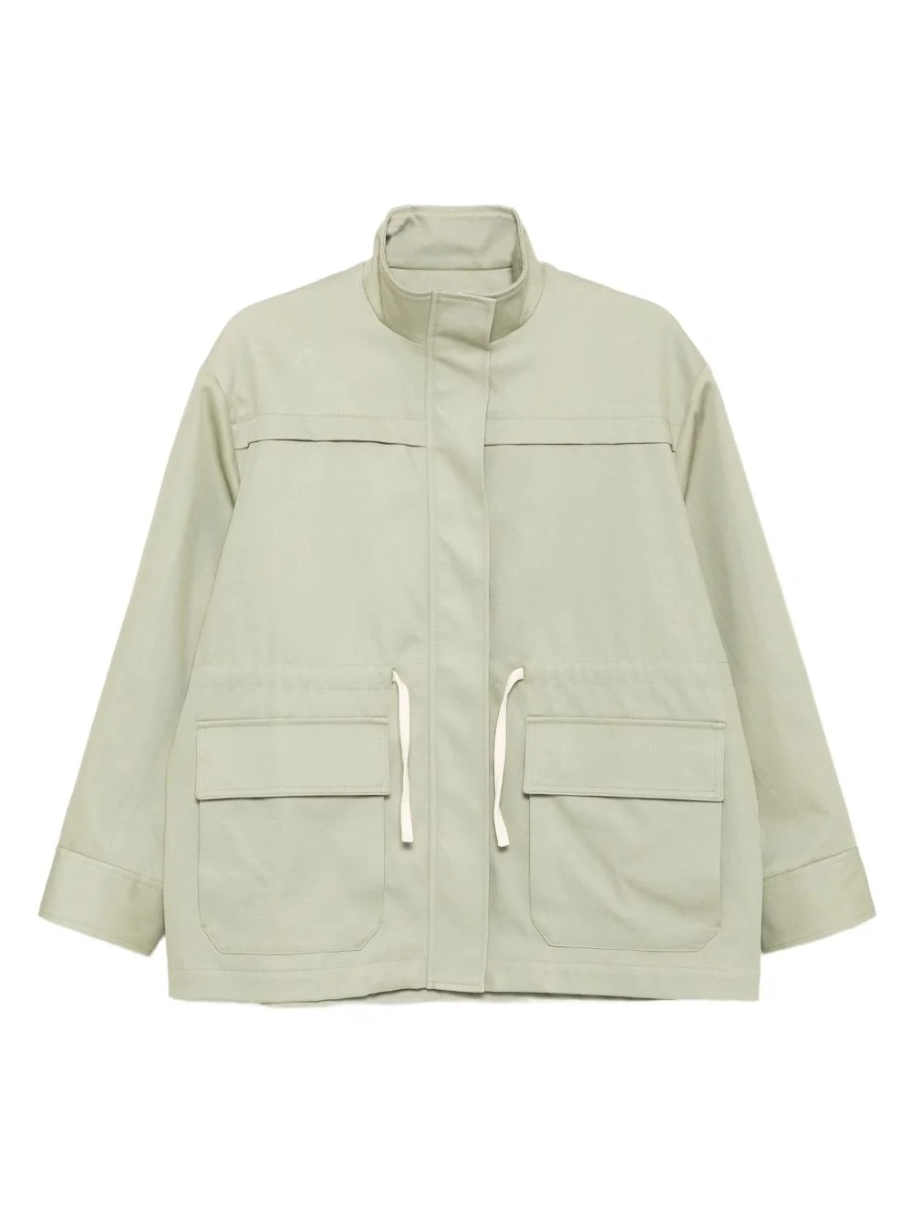 safari jacket Highlights - Mint green - Concealed press studs and zip fastening - Drawstring fastening waist - Two front flap pockets Imported Composition Cotton 100% SIZE & FIT Model measurements Height 5 ft 10 in(1.77 m) Bust/Chest 30.7 in(78 cm) Hips 35.82 in(91 cm) Waist 21.25 in(54 cm) FittingInformation Designed for a relaxed fit, this piece allows for comfort and movement when worn The adjustable drawstring means that you can adjust this piece’s fit to suit your comfort and preference Made from a midweight non-stretch fabric Washing instructions Dry Clean Only