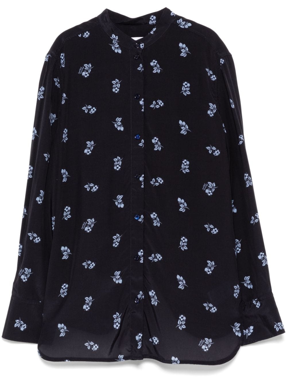 stand collar shirt Highlights - Navy blue/light blue - Officer collar - Front button fastening - Long sleeves - Buttoned cuffs - All-over graphic print - Curved hem Imported Composition Body: Viscose 100% SIZE & FIT Model measurements Height 5 ft 9 in(1.76 m) Bust/Chest 31.1 in(79 cm) Hips 35.03 in(89 cm) Waist 24.4 in(62 cm) FittingInformation Designed for a relaxed fit, this piece allows for comfort and movement when worn Made from a midweight non-stretch fabric